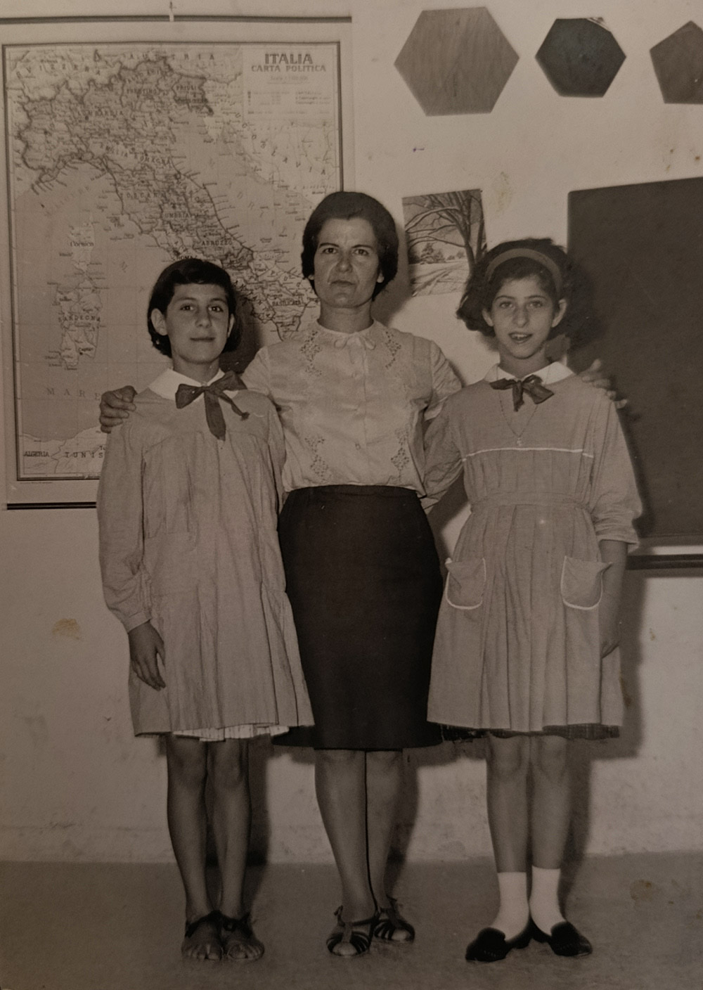 Calimera, Professor Angela De Rinaldis with two of her students, 1965