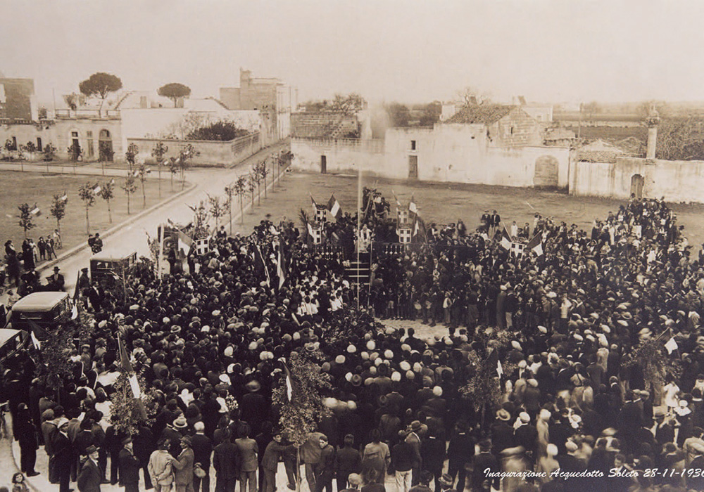 Soleto, inauguration of the aqueduct, November 28, 1936, on the site of the current senior center (former covered market) in Via Raimondello Orsini.