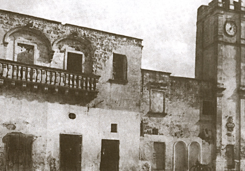 Soleto, Piazza Vittorio Emanuele II, the old Renaissance palace and clock tower demolished to build the current town hall..