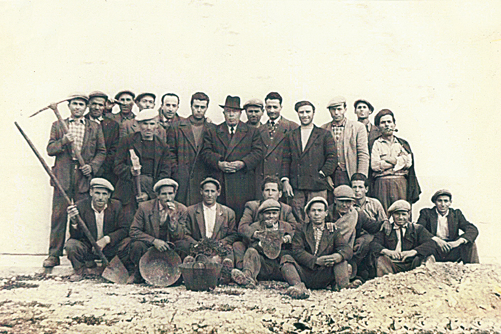 Zollino, Workers after laying asphalt, 1953, Piazza San Pietro